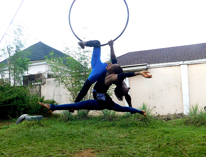Full of daring and difficult acts, those circus shows are among the most exciting forms of live entertainment available. All six artists have performed at shows and festivals in various countries including Ethiopia, Morocco, Côte d’Ivoire, France, Belgium, Switzerland, and recently, Nigeria. One of their goals is to promote circus shows in Nigeria. Already, they have performed at the international Carnival in Calabar and numerous others. They aim to participate in other festivals, and full-length shows, animate special events like inaugurations, balls, and parties, and perform at street shows. Between the members, they perform floor acrobatics, human pyramids, aerial silks, aerial hoop, hula hoop, and juggling (hats, balls, and clubs).