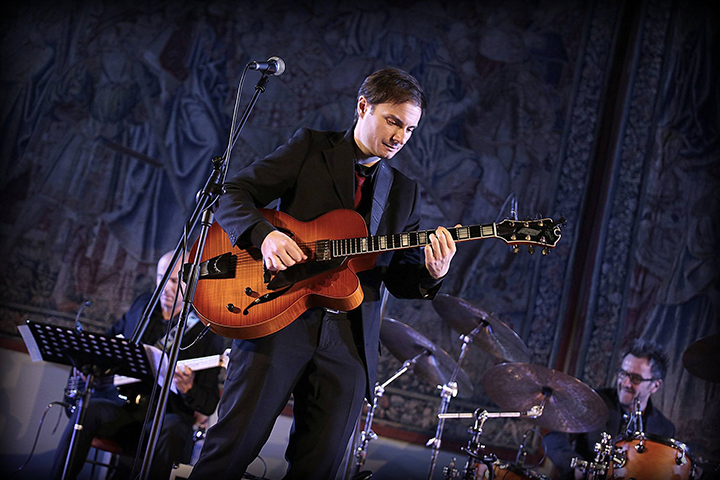 A skilled singer, guitarist, and producer, known for performing the Great American Songbook with a warm, crooner’s voice and expertise on the seven-string guitar. Blending Swing classics, original songs, and Pop hits, he delivers refined, elegant shows with top-level musicians.